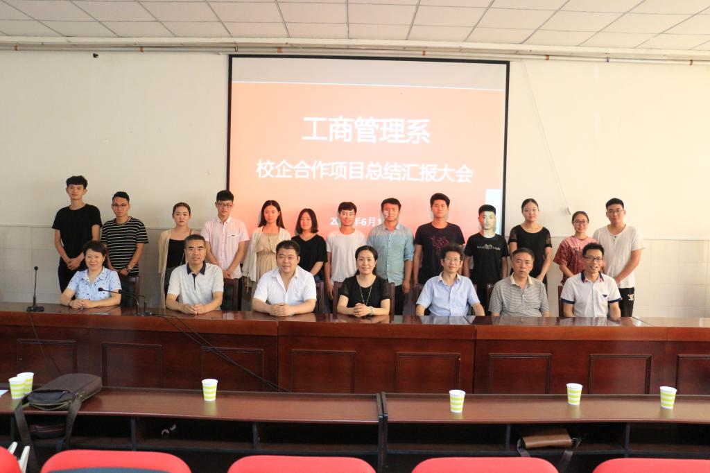 2018年6月15日下午,工商管理系在学院3101会议室举办了校企合作项目总结汇报大会,漯河市电子商务协会李峰部长、天兴化妆品有限公司负责人、工商管理系班子成员及部分教师、2016级电子商务和网络营销专业的学生参加了汇报大会。